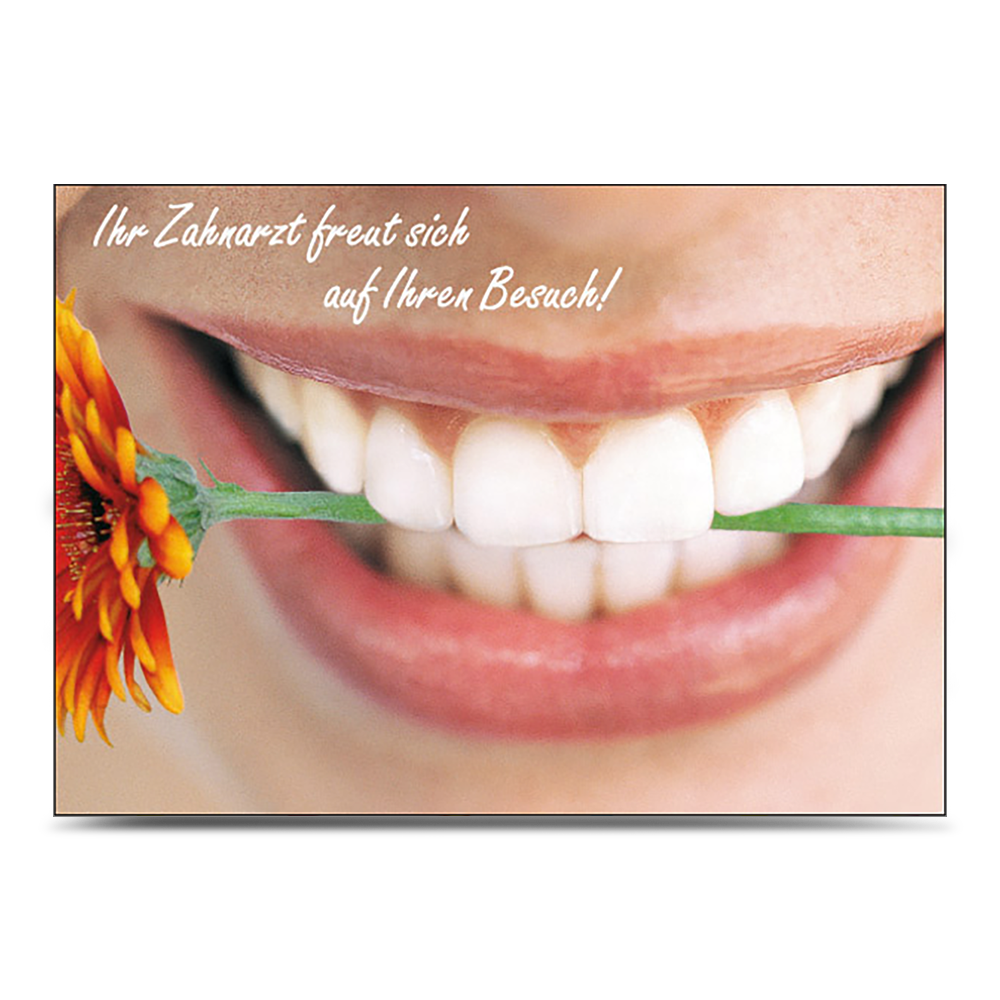 Eindruck der Praxisadresse, Logo- und Farbeindruck und individuelle Rückseitentexte gegen Aufpreis möglich.