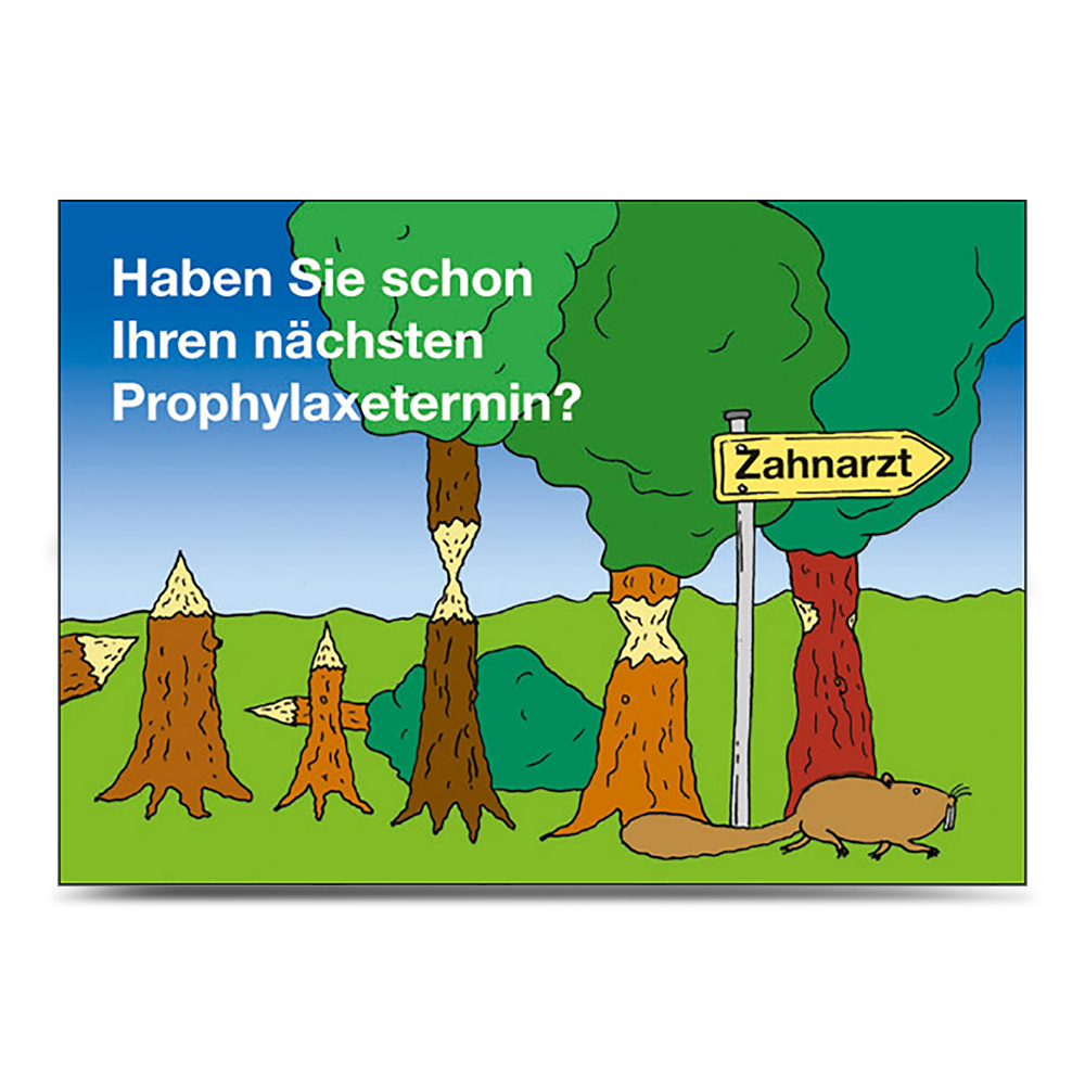 Eindruck der Praxisadresse, Logo- und Farbeindruck und individuelle Rückseitentexte gegen Aufpreis möglich.