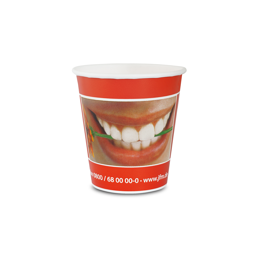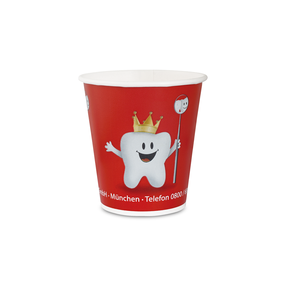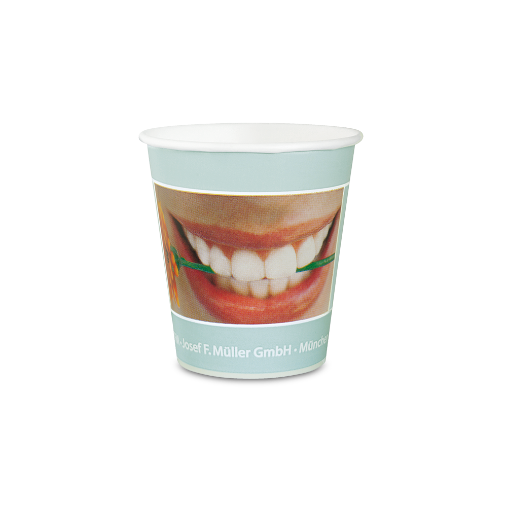 Hochwertige Mundspülbecher aus Pappe mit attraktiven Motiven.