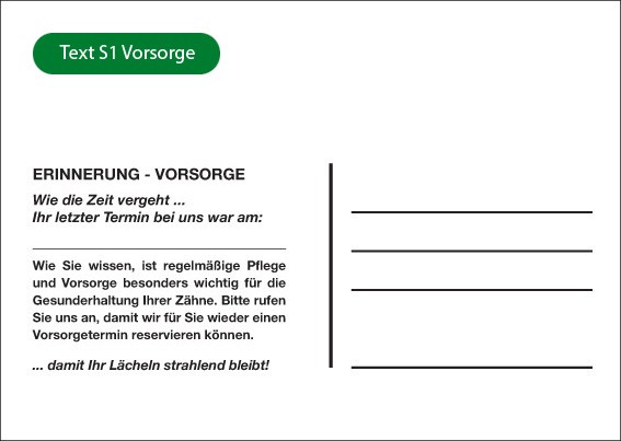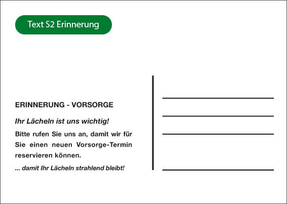 Eindruck der Praxisadresse, Logo- und Farbeindruck und individuelle Rückseitentexte gegen Aufpreis möglich.